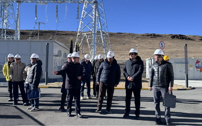肖長歌一行在色尼區(qū)達嘎普獨立儲能項目調(diào)研現(xiàn)場。