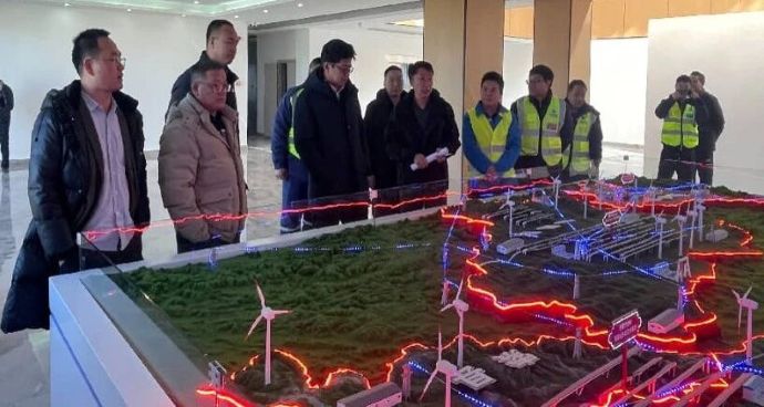 肖長歌一行在色尼區(qū)曲果嘎姆風電項目調(diào)研現(xiàn)場。