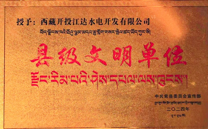 西藏開投江達(dá)水電開發(fā)有限公司獲評縣級文明單位