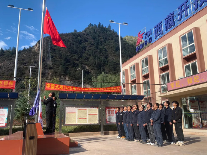 10月1日,果多水電公司全體干部職工在辦公樓前整齊列隊。隨著莊嚴(yán)肅穆的音樂聲響起,升旗儀式正式開始,鮮艷的五星紅旗冉冉升起,迎風(fēng)飄揚,全體干部職工面向國旗行注目禮,共同表達(dá)對祖國的忠誠和熱愛。