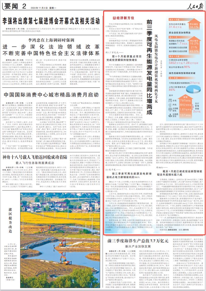前三季度可再生能源發(fā)電新增裝機(jī)占電力新增裝機(jī)的86%