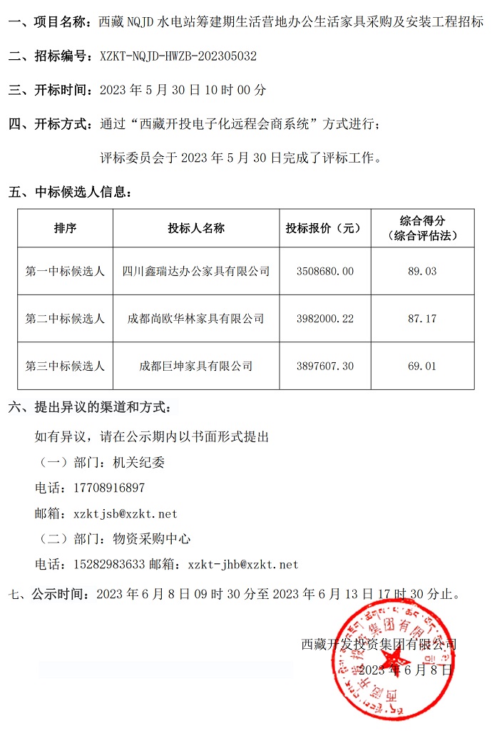中標(biāo)候選人公示