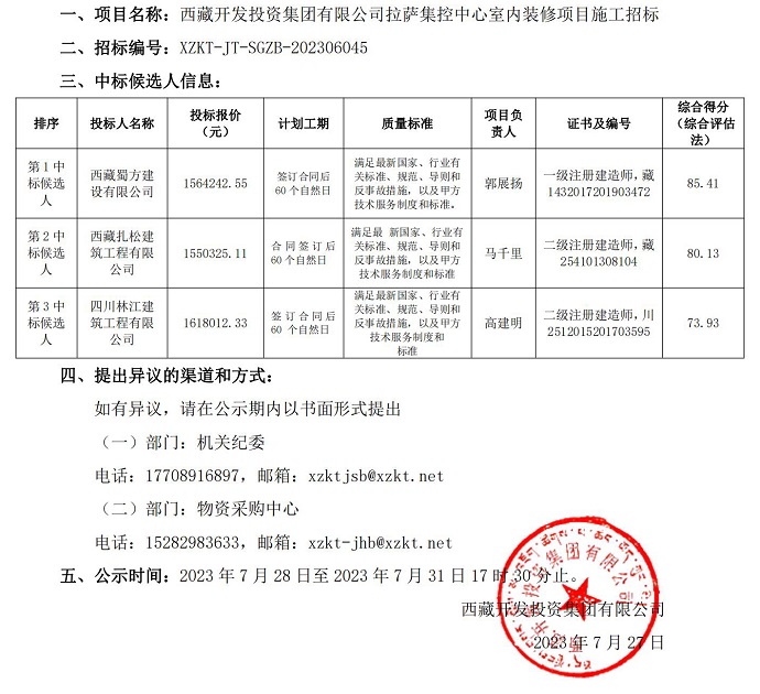 中標候選人公示