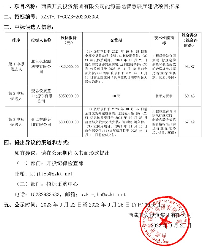 中標(biāo)候選人公示